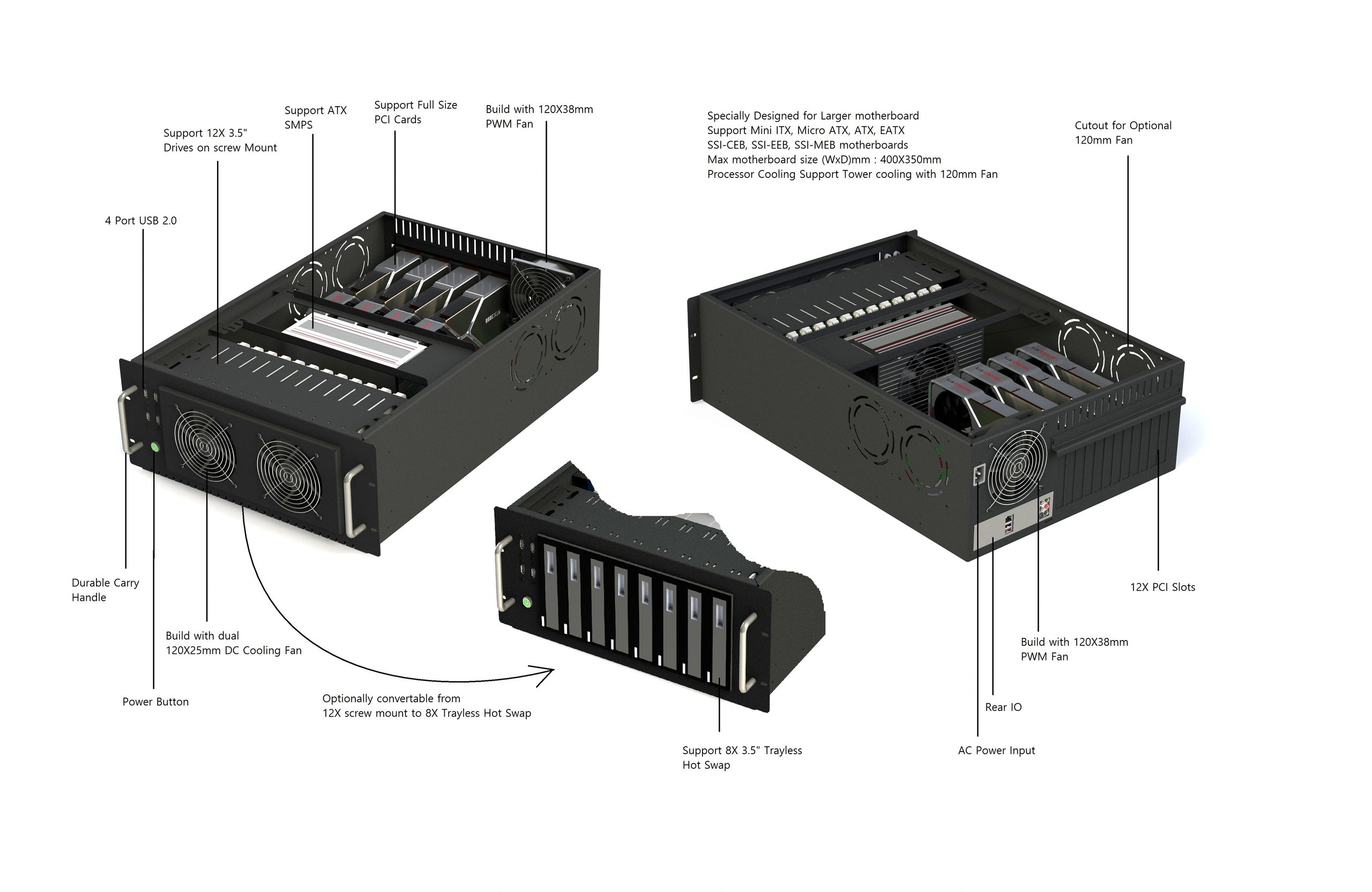 This case build with 12X Full size PCI slots, to extract max possibilities from a motherboard.